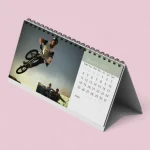 For the wall calendar, we offer saddle stitching and a 0.125″ hole at the top middle to hang it easily. We use wire-O binding for our custom desk calendar.
