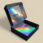 Make your packaging stunning with custom holographic boxes from iPackU! Featuring a mesmerizing rainbow-like finish, these boxes change colors at different angles, instantly grabbing attention. Made from durable rigid, corrugated, or cardboard material. They add a luxurious touch to cosmetics, tech gadgets, & high-end retail products. Customize with embossing, debossing, or spot UV for a premium look. Get a free quote today!